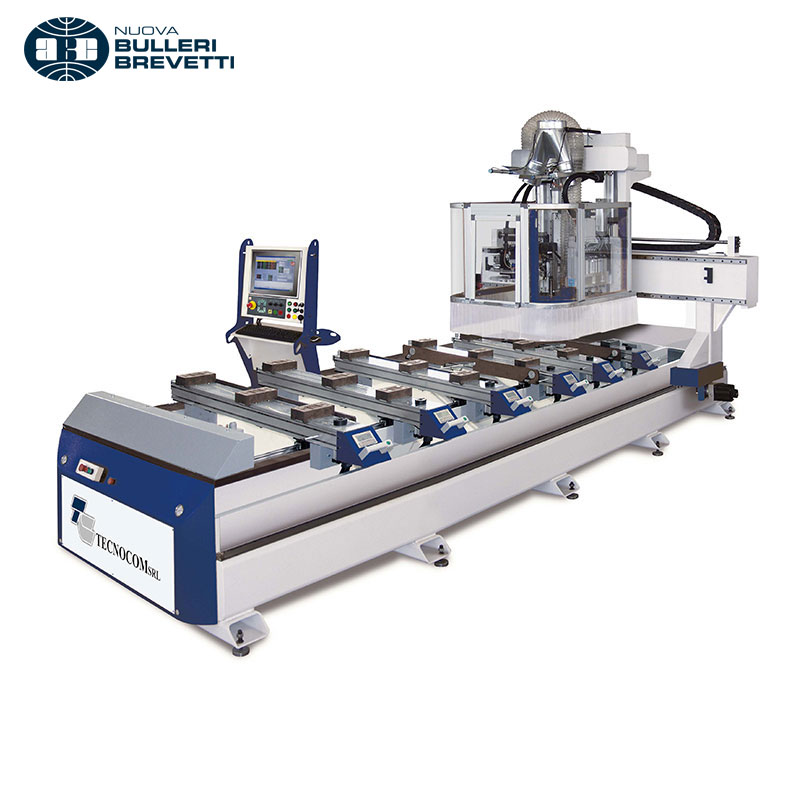 Nella versione per lavorazione di infissi, archi, finestre, porte smontate con elettromandrini di alta potenza, grandi cambi utensili automatici, morse per infssi.